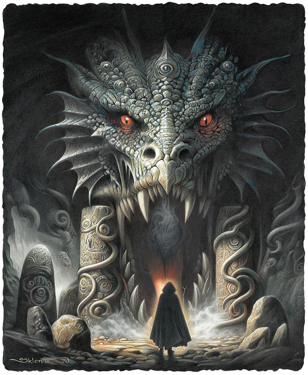 Hluboký černý otvor působil děsivě. Sálalo z něj žhnoucí teplo a z mihotavých plamenů po okrajích vycházel dým, připomínající dračí dech. Okraje brány ovíjeli hadovití netvoři s dračí hlavou a starobylé symboly moci na jejich tělech pulzovaly tajemnou energií. Celá brána vyzařovala auru moci, nebezpečí, ale zároveň i lákavý příslib dobrodružství.