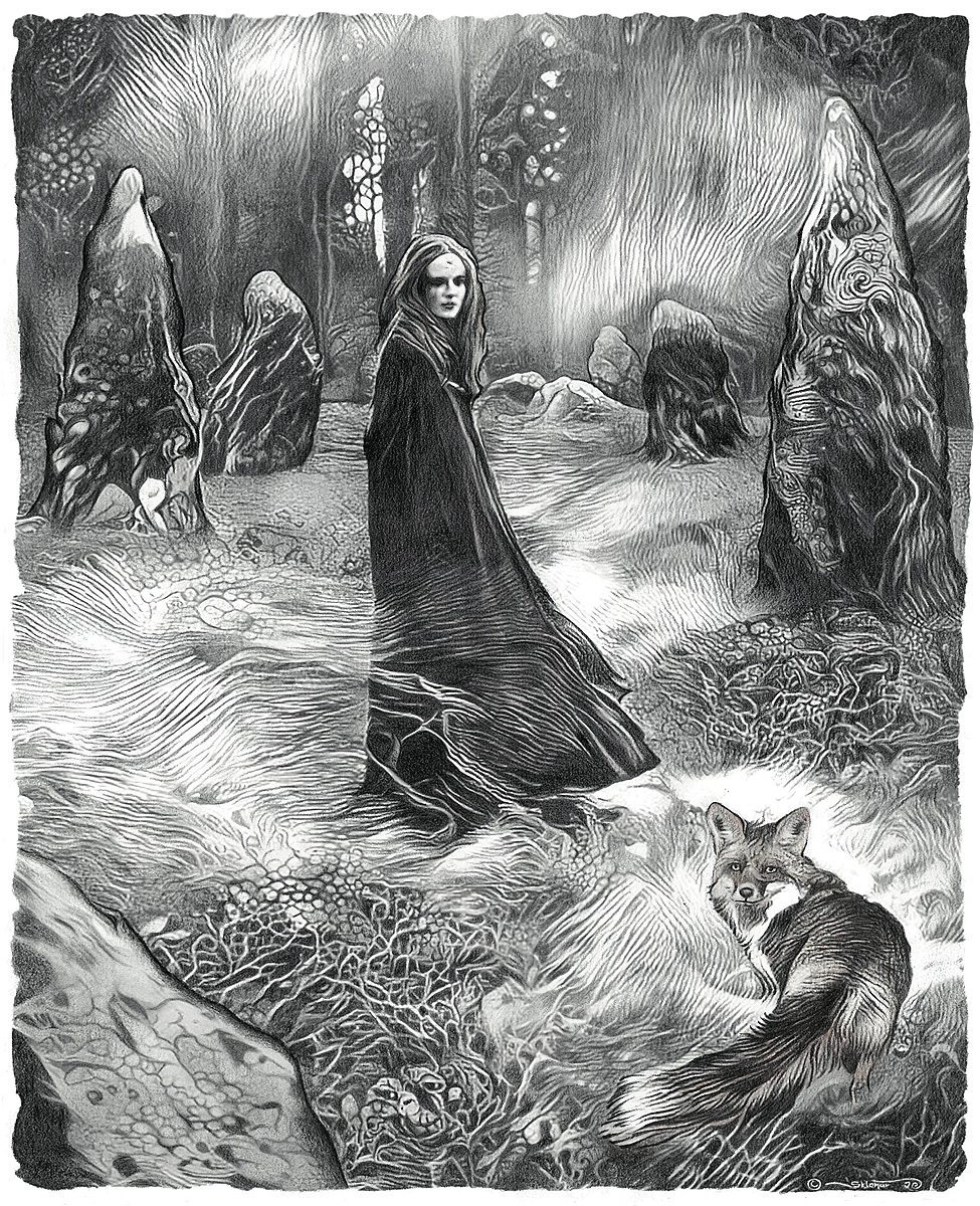 Jednoho podzimního večera, kdy se mlha pomalu zvedala z luk, vystoupala Šerava do skalnatého kotle zvaného Halda, aby navštívila posvátné místo uprostřed kruhu menhirů. Nesla s sebou jalovcovou runu a hrst bylin pro lesní duchy. Věděla, že místo má moc, a cítila v kostech, že dnes se něco změní.